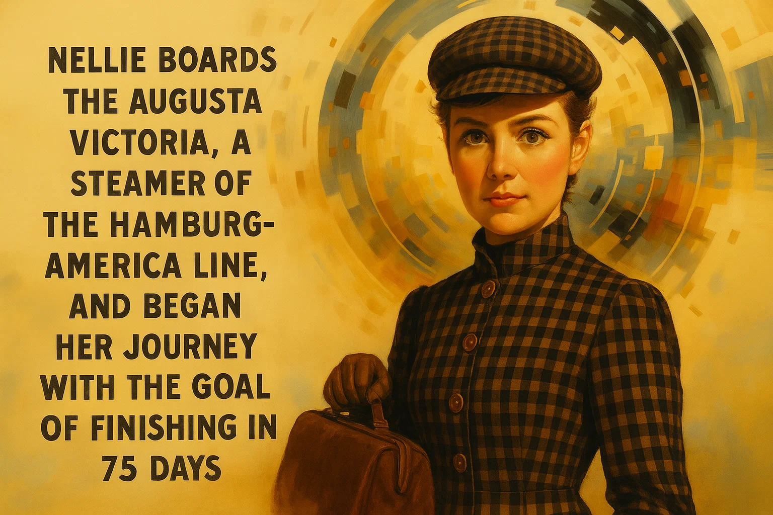 Inspired by Jules Verne, pioneer American woman journalist Nellie Bly (Elizabeth Cochrane) begins an attempt to beat travel around the world in less than 80 days (Bly finishes the journey in 72 days, 6 hours and 11 minutes). On November 20, 1889, The Gran